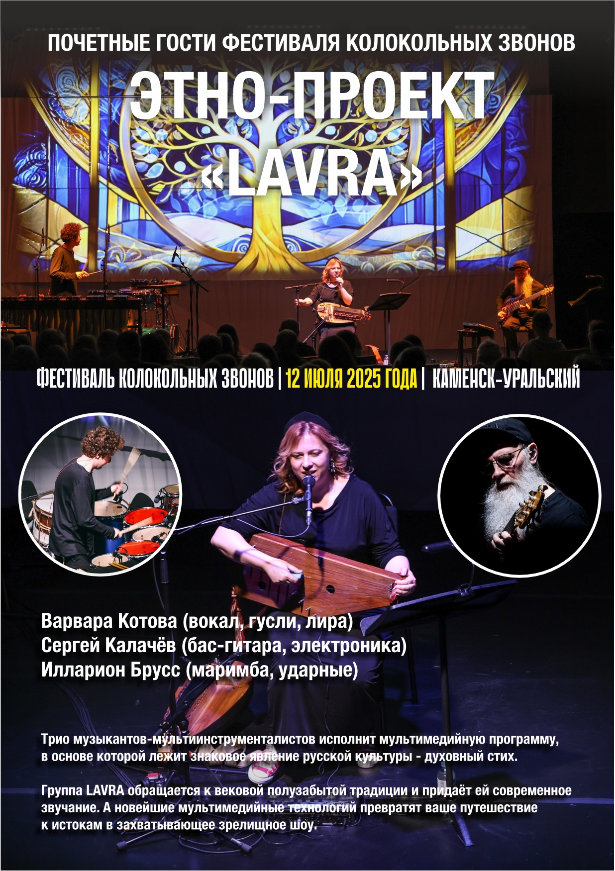 Этно-проект Lavra — это музыкальная группа, которая специализируется на создании нового вида этнической музыки, сочетая в себе элементы разных культур. Группа состоит из трех музыкантов, использующих вокал, гусли, колесную лиру, бас-гитару и маримбу.