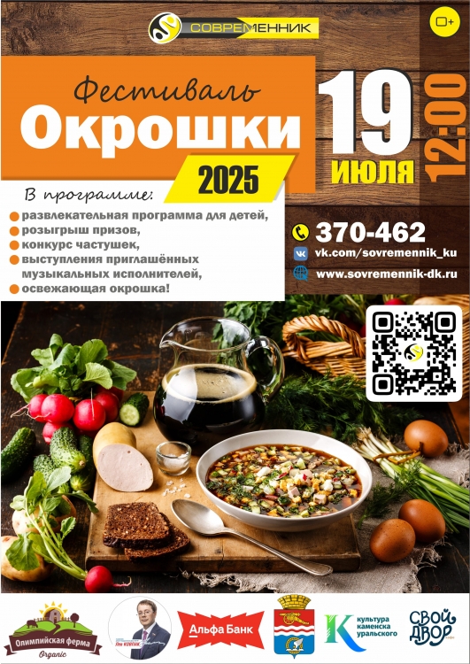 19 июля с 12:00 до 15:00 на площади у ДК «Современник» пройдет главный гастрономический праздник Каменска-Уральского – Фестиваль окрошки!