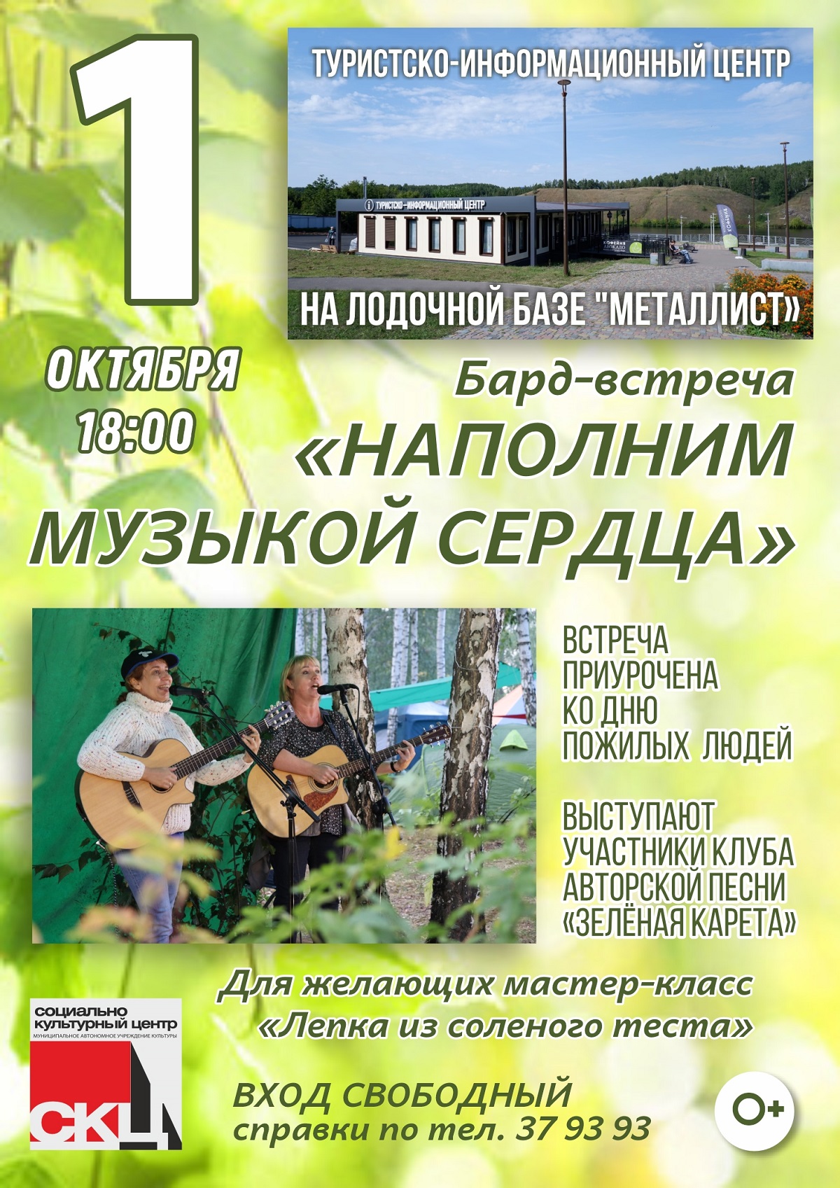 1 октября в 18:00 в помещении Туристско-информационного центра на берегу реки Исети состоится выездная бард-гостиная. Мероприятие приурочено ко Дню людей старшего возраста и Международному дню музыки.