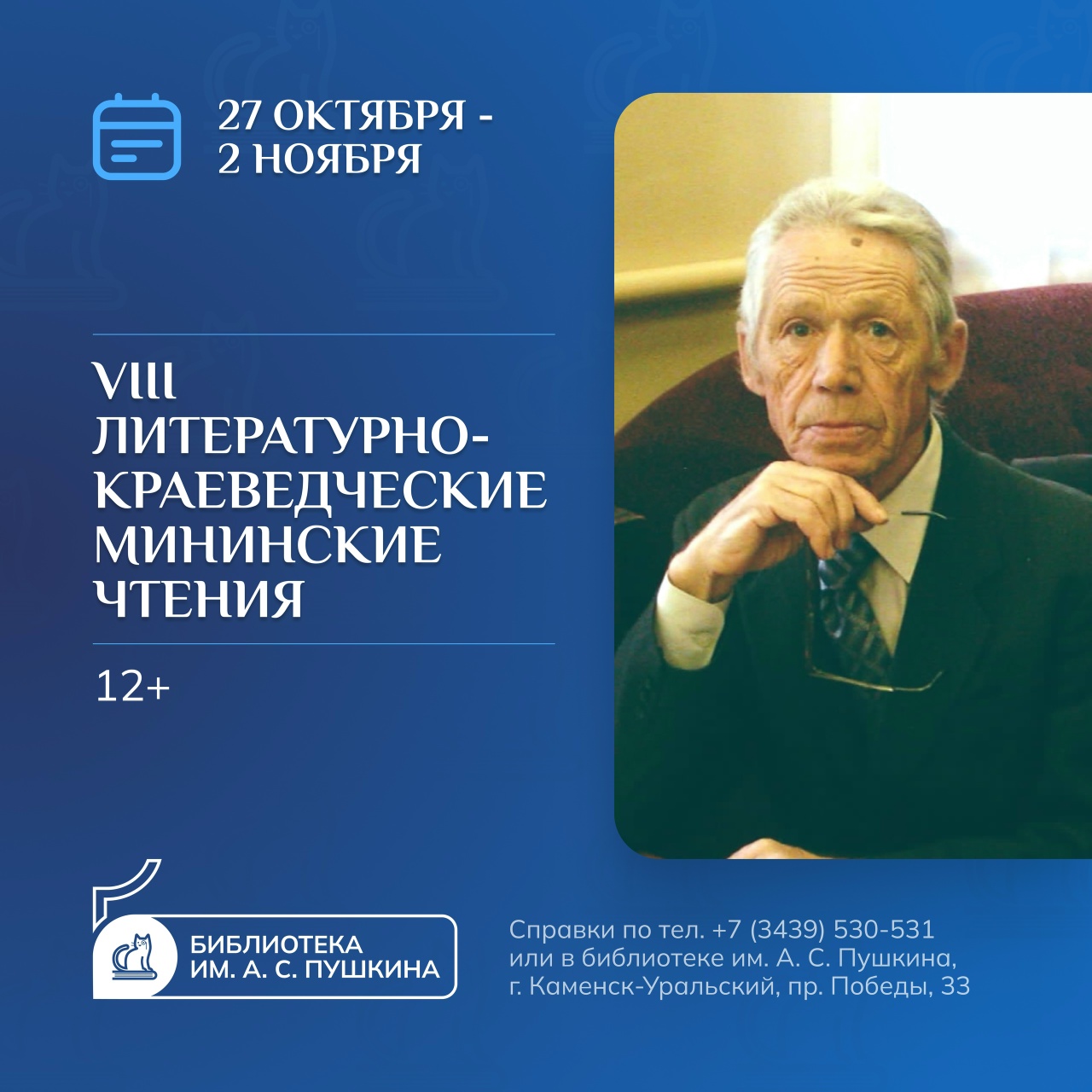 С 27 октября по 2 ноября в Центральной городской библиотеке им. А. С. Пушкина состоятся VIII литературно-краеведческие Мининские чтения, посвященные памяти поэта Михаила Минина.