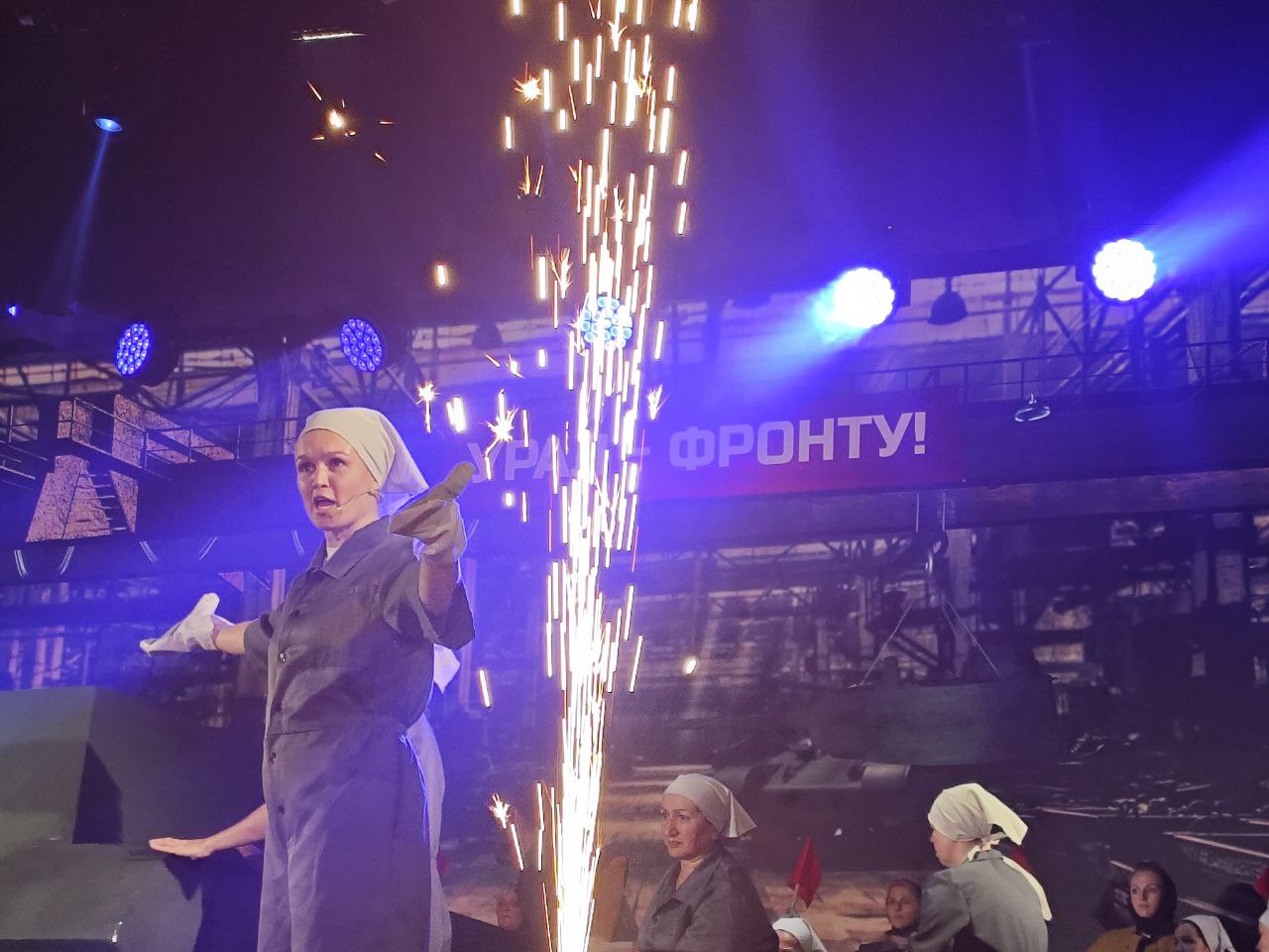 Более двухсот участников разыграли на сцене историю уральской семьи, в которой отразилась судьба миллионов советских граждан. В постановке соединились драматические сцены, танцевальные номера, видеопроекции и живое музыкальное исполнение. Повествование происходит от лица каждого героя, через упоминания имён воинов-уральцев, тыловиков, номеров госпиталей, детских домов, заводов, которые работали на территории Свердловской области.