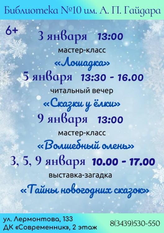 Мероприятия библиотеки №10 «В зимнюю сказку откроется дверь»
