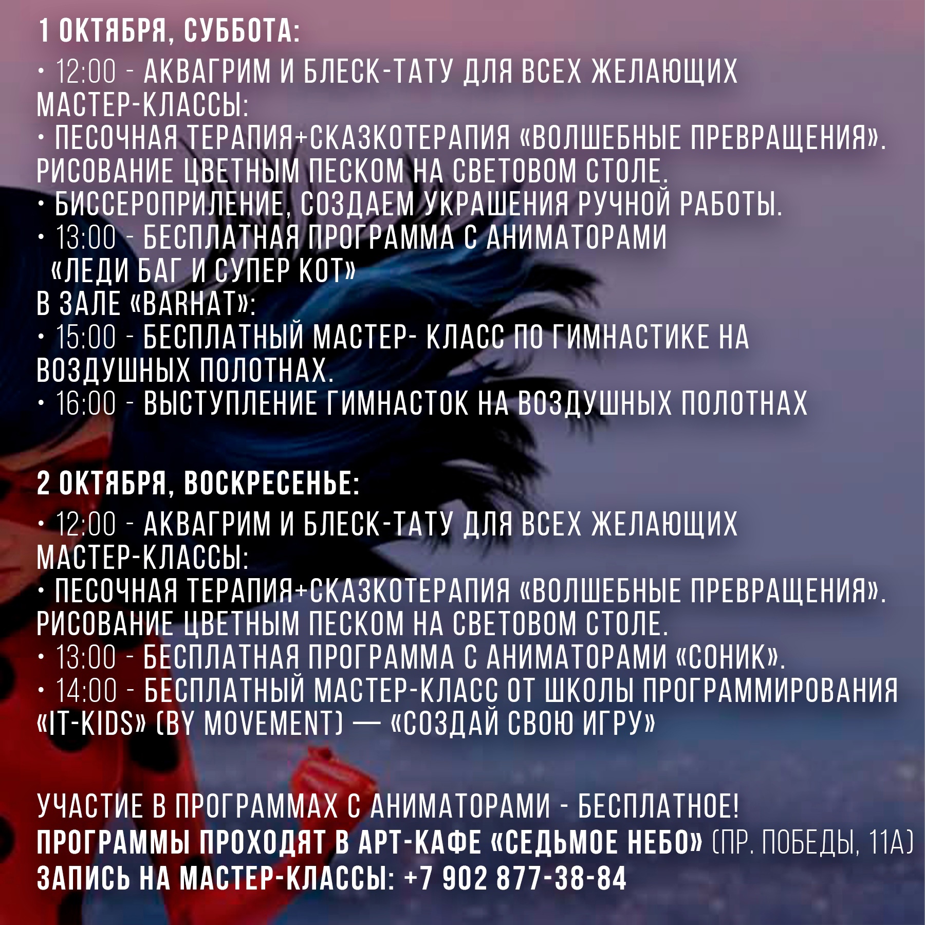 Детские мероприятия в Седьмом небе 1 и 2 октября