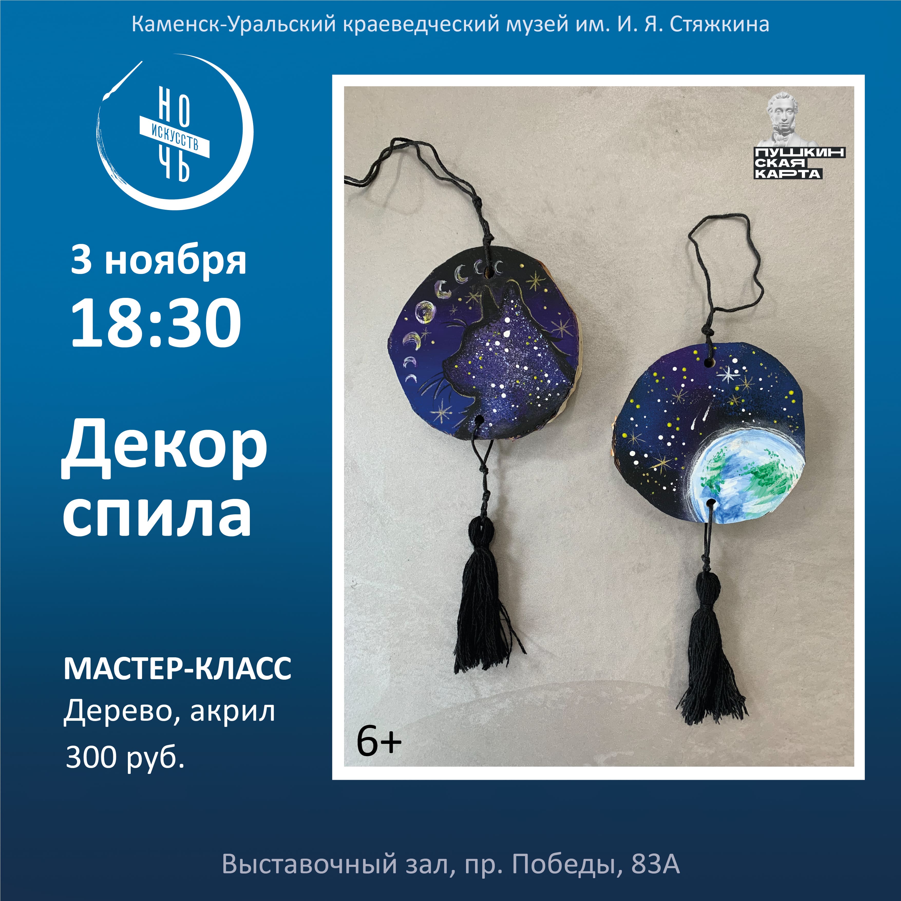 18.30-22.30. МАСТЕР-КЛАСС «Декорирование спила». Роспись акрилом по дереву, 6+. (300 руб., Пушкинская карта)