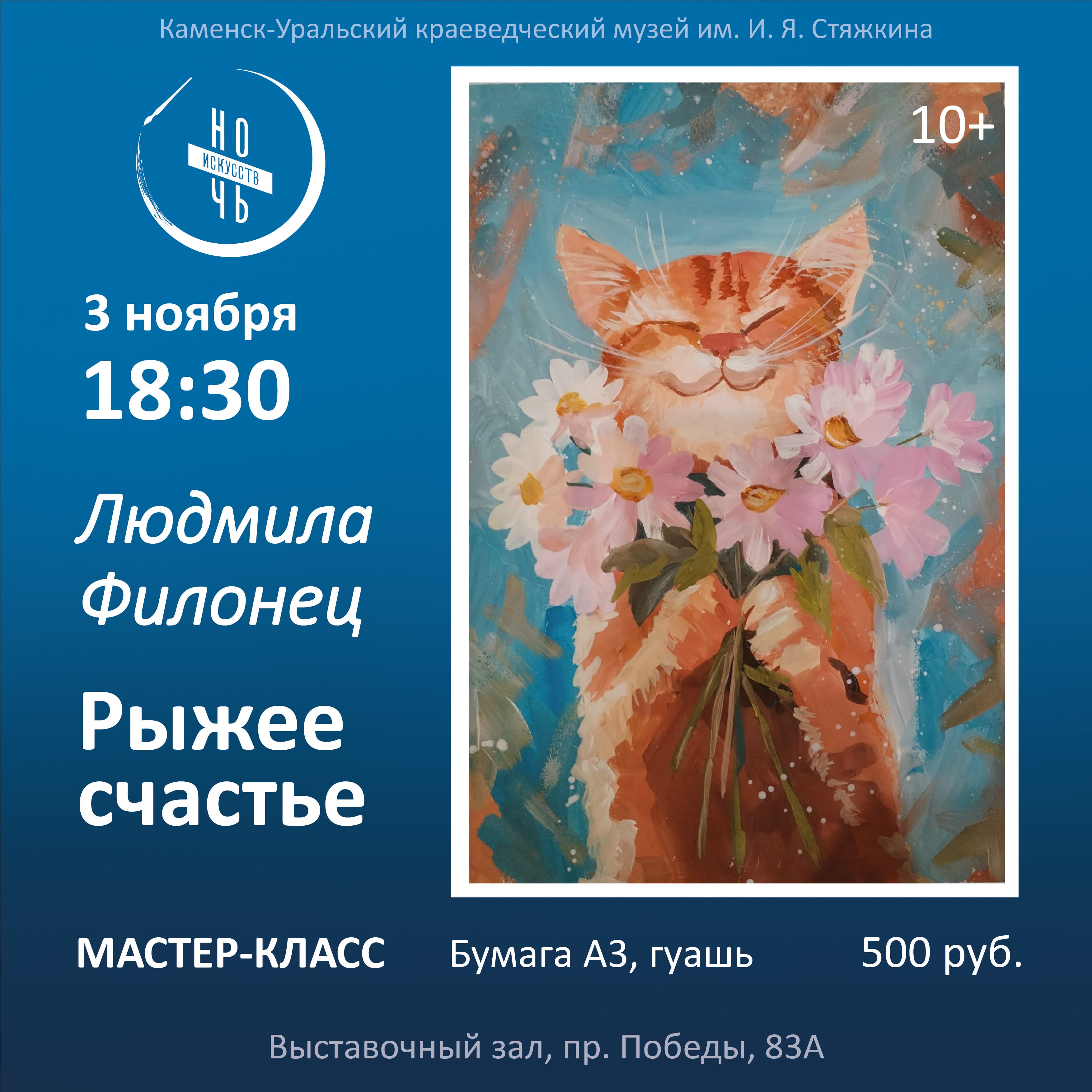 18.30-20.00. МАСТЕР-КЛАСС.  Людмила Филонец «Рыжее счастье», 10+. Бумага формат А3, гуашь (500 руб.)