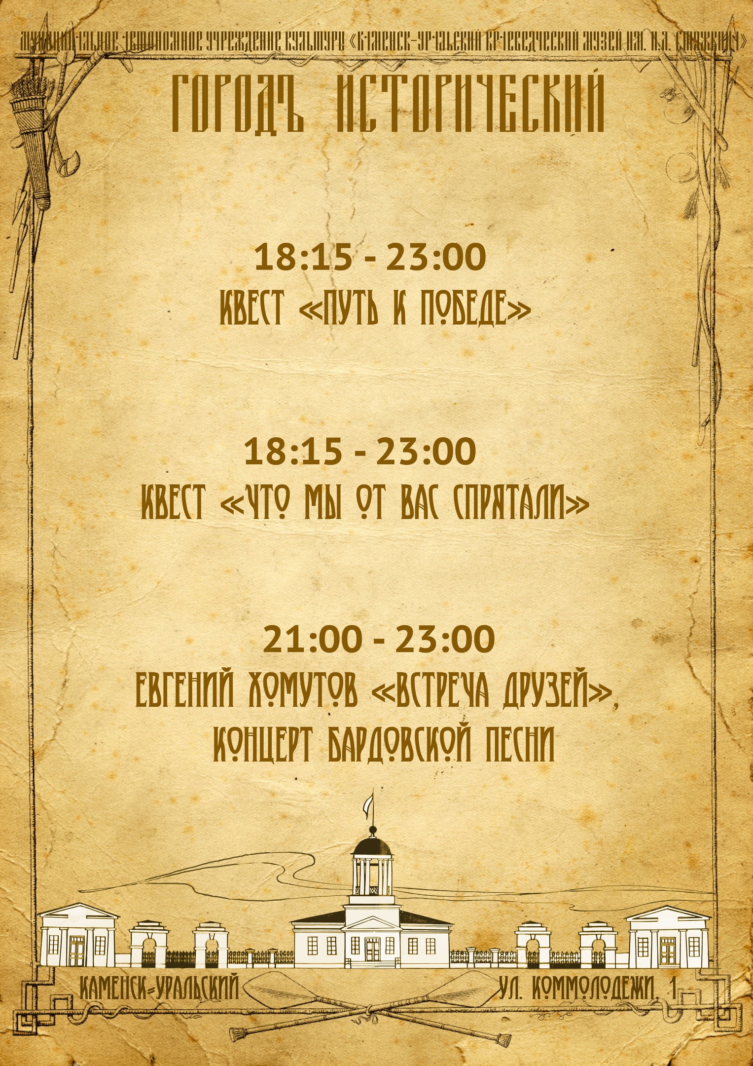 21.00–23.00 - Евгений Хомутов «Встреча друзей», концерт бардовской песни.