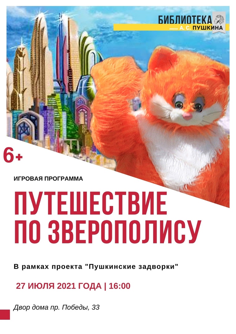 6 июля библиотека Пушкина открывает сезон дворовых игровых программ для детей «В гостях у Кота Ученого».