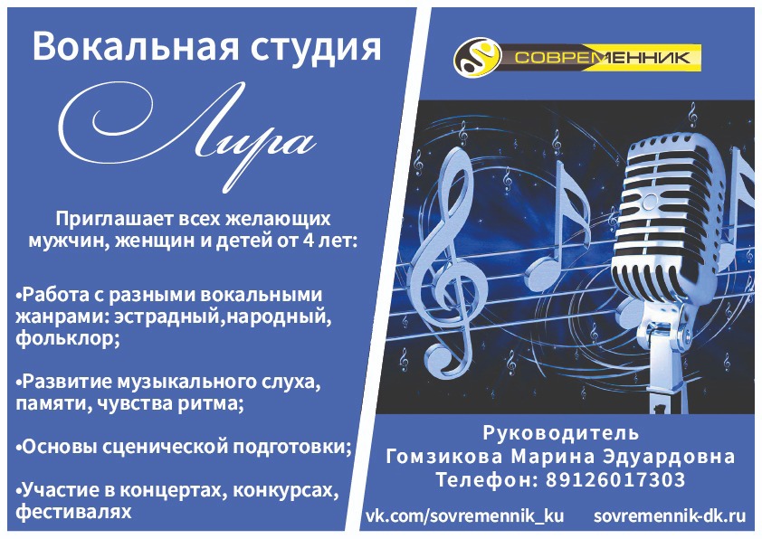 Вокальная студия "Лира" объявляет набор всех желающих мужчин, женщин и детей от 4-х лет.