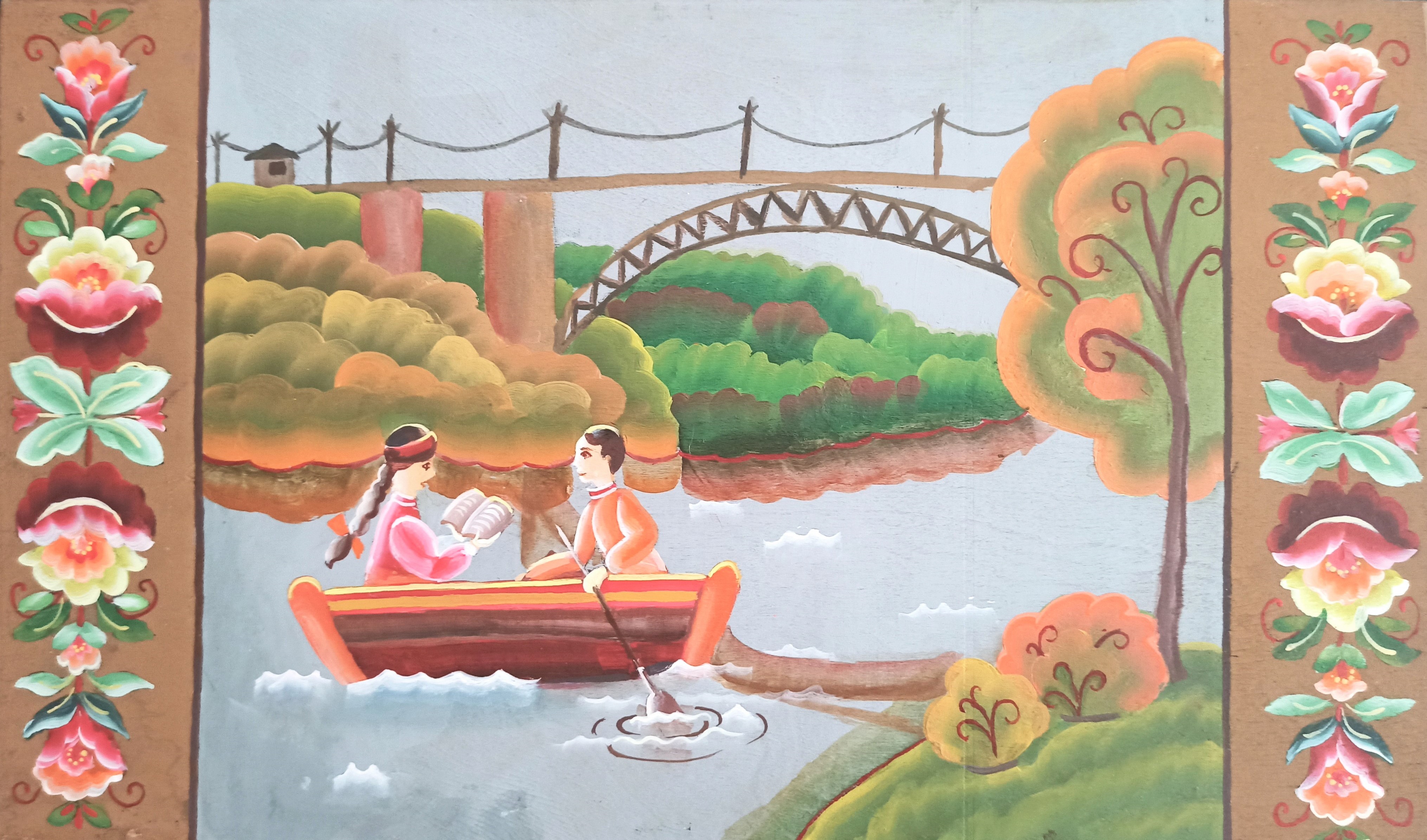 Традиционно декорировались экстерьеры, интерьеры и домашняя утварь крестьянских жилищ. Кроме стен, потолков, дверей расписывали прялки, коромысла, берестяную и деревянную посуду. К слову сказать, на Урале в это время постепенно складываются два направления в росписи утвари – роспись металлических и деревянных изделий.