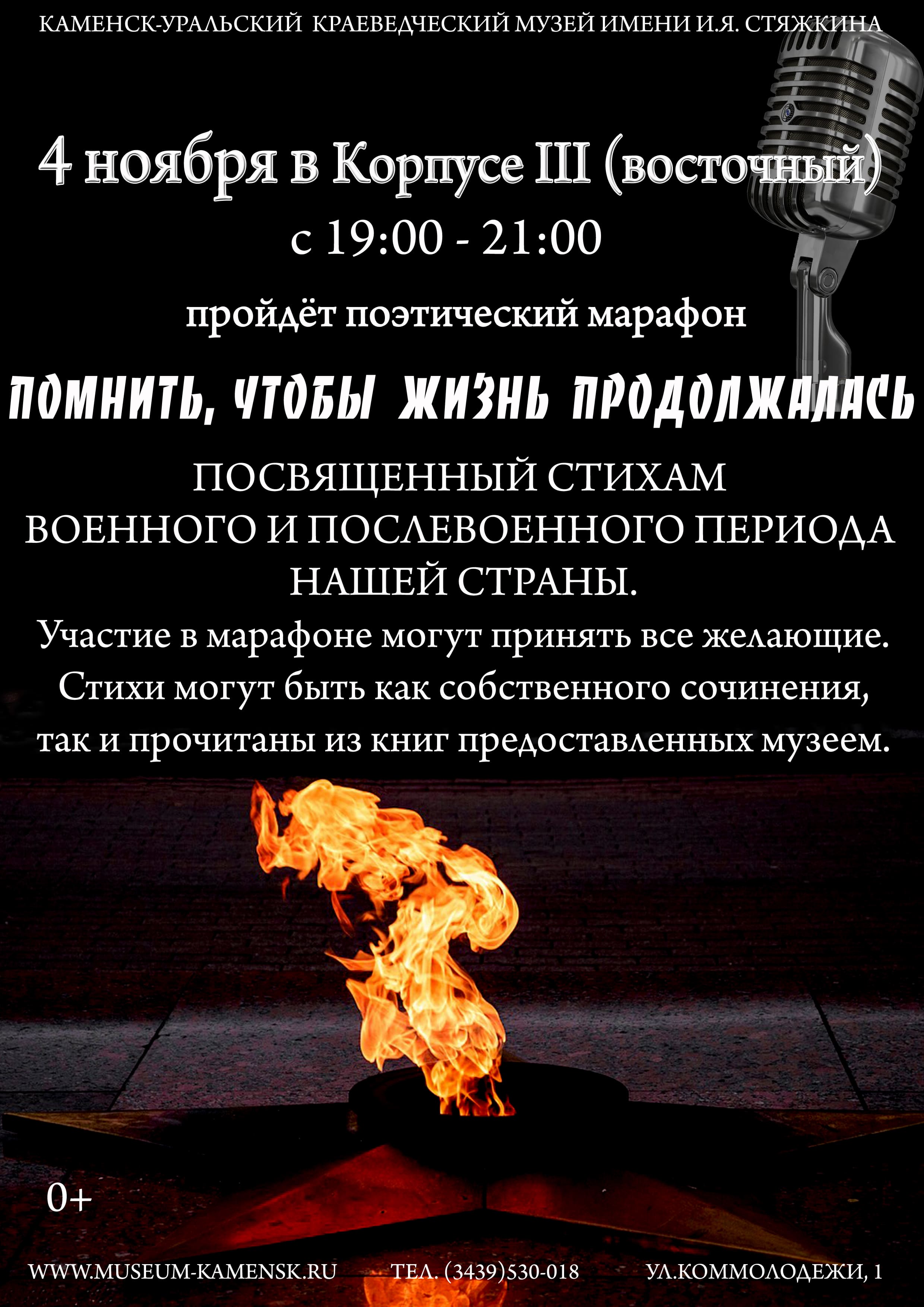 Так, в Восточном корпусе покажут редкие советские мультфильмы, устроят конкурс рисунков «В каждом рисунке Победа» и проведут поэтический марафон «Помнить, чтобы жизнь продолжалась», посвященный военному и послевоенному периоду нашей страны. Участие смогут принять все желающие. Можно декламировать свои стихи либо произведения других авторов.