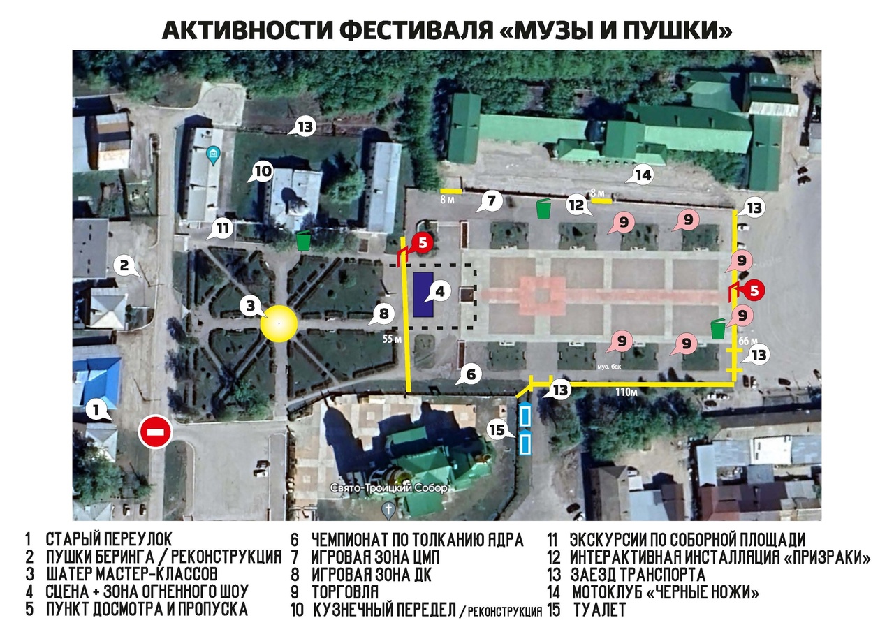 15.00 – Реконструкция "Переда пушек, изготовленных на Каменском железоделательном заводе для Великой Северной экспедиции командра Витуса Беринга весной 1734 года" (ул. Коммолодежи 8-12). Участвуют актеры театра Драма Номер Три. Продолжительность: 30 минут.