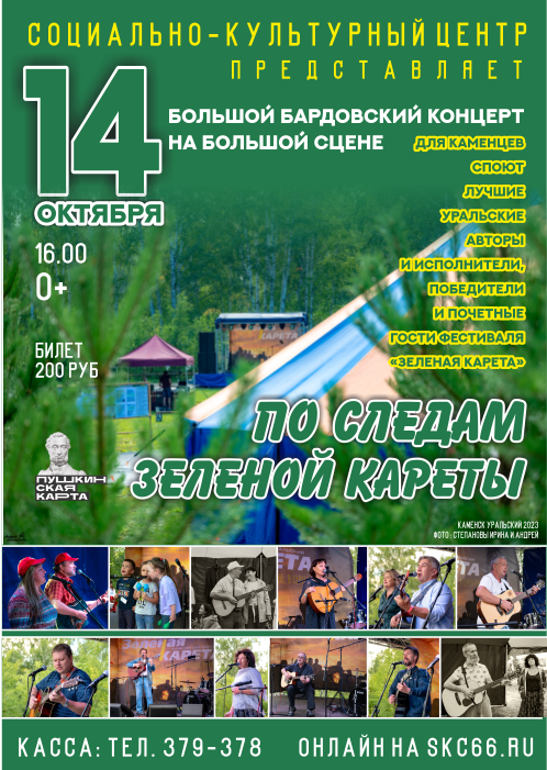 В Социально-культурном центре снова соберутся лучшие представители фестивальных «каретных» концертов, причем самых разных, в том числе и костровых. Речь, конечно, про традиционный осенний концерт «По следам Зеленой кареты».