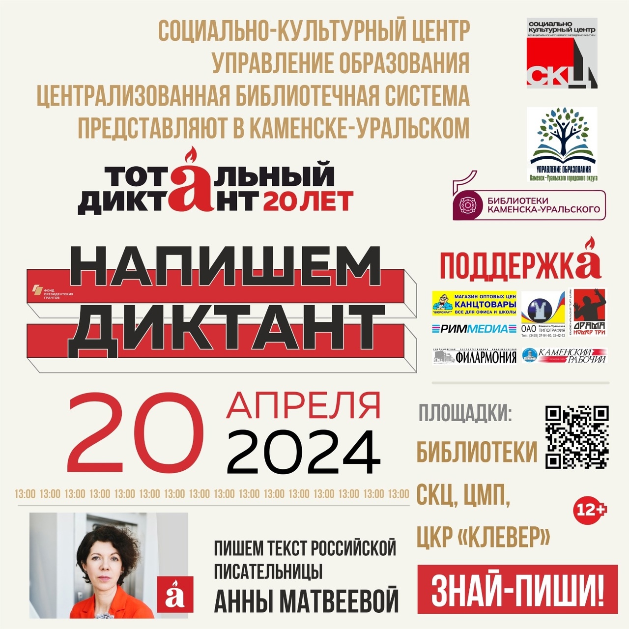 20 апреля в 13.00 все желающие вновь смогут проверить свою грамотность и познакомиться с современной русской литературой. На этот раз текст для диктанта написала Анна Матвеева.