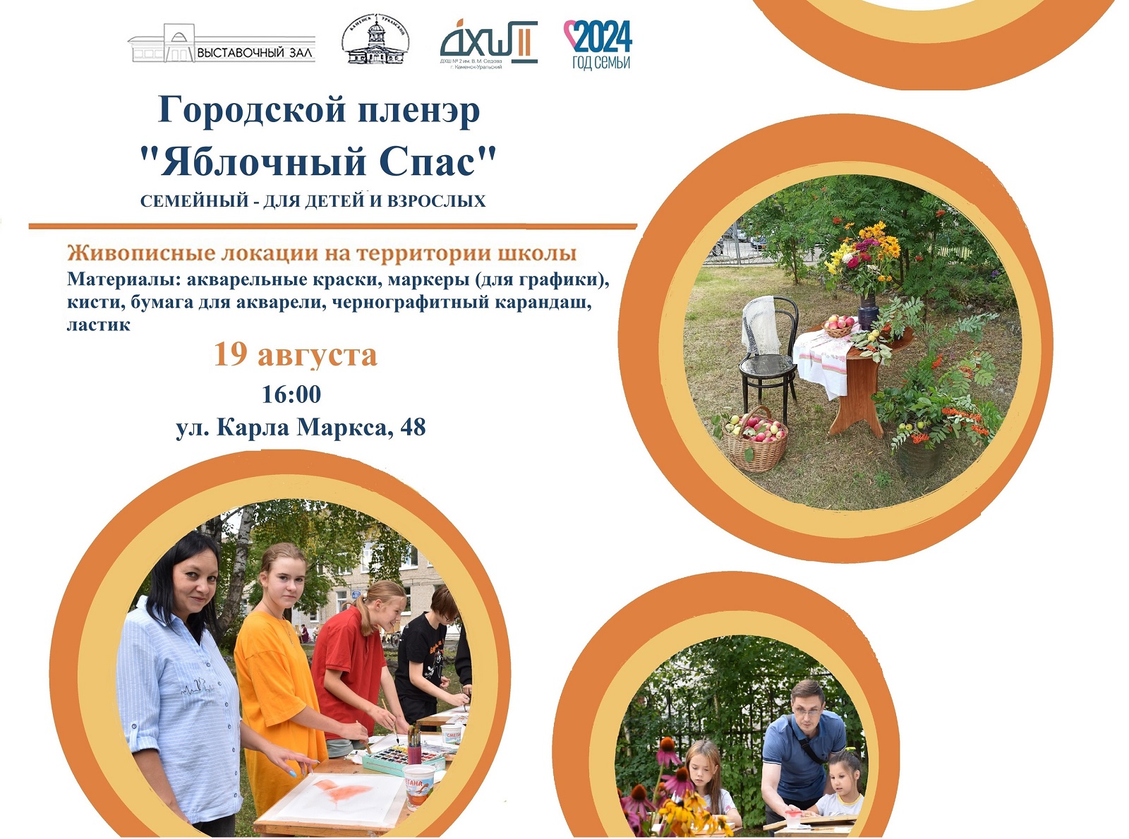 В этот же день во дворе художественной школы пройдет большой городской пленэр «Яблочный Спас», который собирает друзей уже в третий раз. В прошлом году в «Яблочном Спасе» приняли участие больше 70 человек. С каждым годом растет количество участников пленэра. По сложившейся традиции рисование на свежем воздухе привлекает не только юных художников, но и членов их семей, которые с удовольствием берут в руки кисти и краски и создают прекрасные акварельные работы. В этом году на территории школы появится еще больше живописных локаций и фотозон! А юные любители графики смогут впервые создать свои работы не красками, а с помощью маркеров. Под руководством опытных преподавателей художником в этот день почувствовать себя сможет любой желающий. Главное – желание творить! Творческую атмосферу щедрого августа поддержит и традиционное чаепитие с настоящим самоваром, ароматными травяными сборами и сладостями.