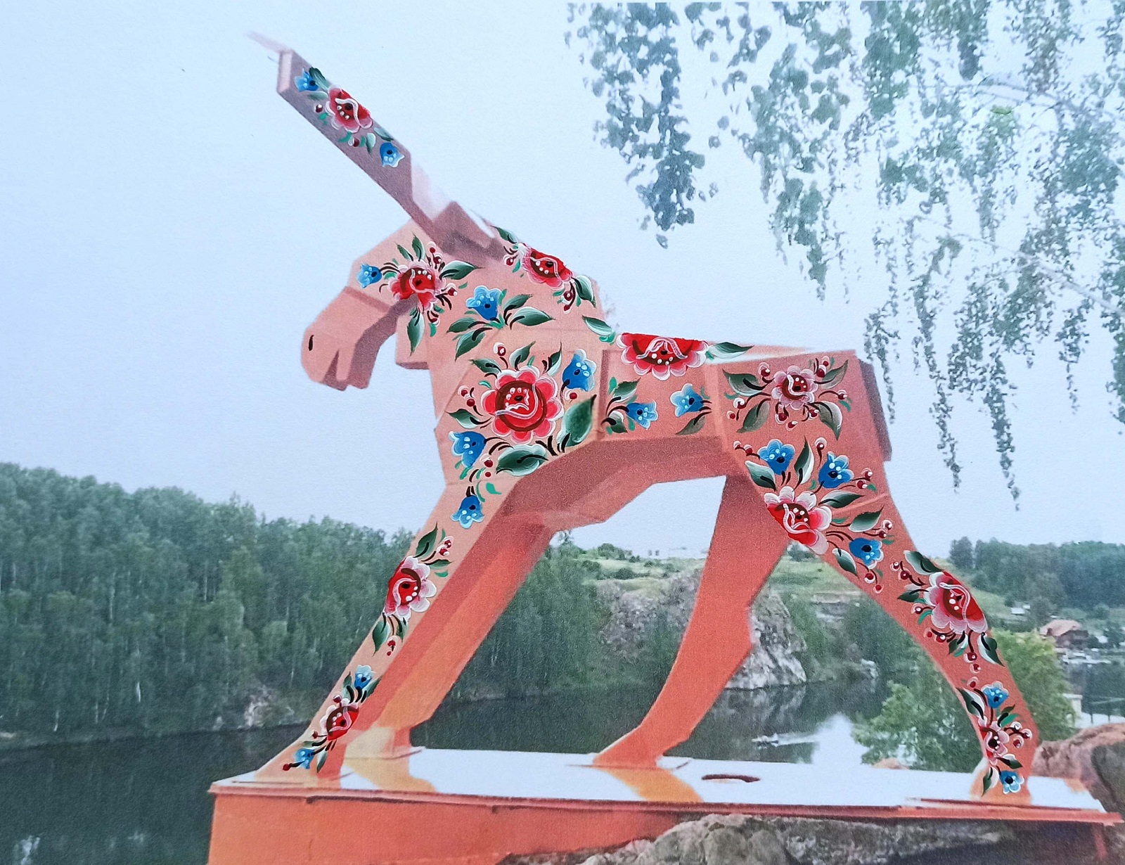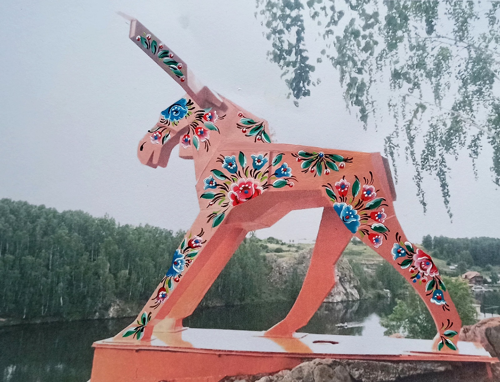 Елена Николаевна рассказывает, что на роспись маленьких лосей её вдохновил большой - тот, что стоит уже более 40 лет над Исетью. Но с другой стороны, почему бы не примерить новый наряд и оригиналу? Управление культуры совместно с Центром туризма Каменска-Уральского поддержали идею и попросили подготовить варианты росписи для скульптуры.
