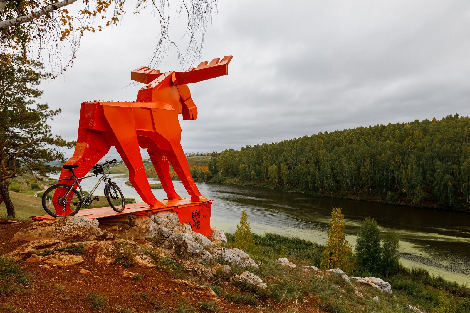 Информационная справка: Арт-объект был установлен в середине 1980-х годов. К 2025 году лось несколько раз менял свой окрас. Скульптура была серебристой, розовой и даже пятнистой. Сегодня лось оранжевый. Автор памятника - художник и скульптор Владимир Пермяков.