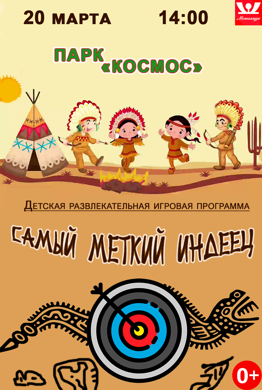 20 марта дворец культуры «Металлург» приглашает всех-всех-всех в парк "Космос" на развлекательную программу для детей и родителей: «Самый меткий индеец».