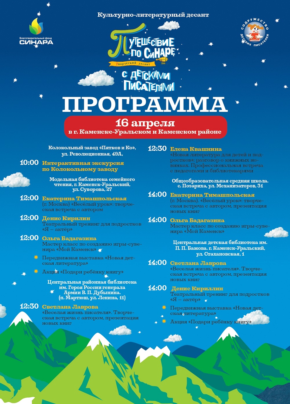 16 апреля в Каменске-Уральском высадится литературный десант: АНО «Содружество детских писателей» отправляется в «Путешествие по Синаре».