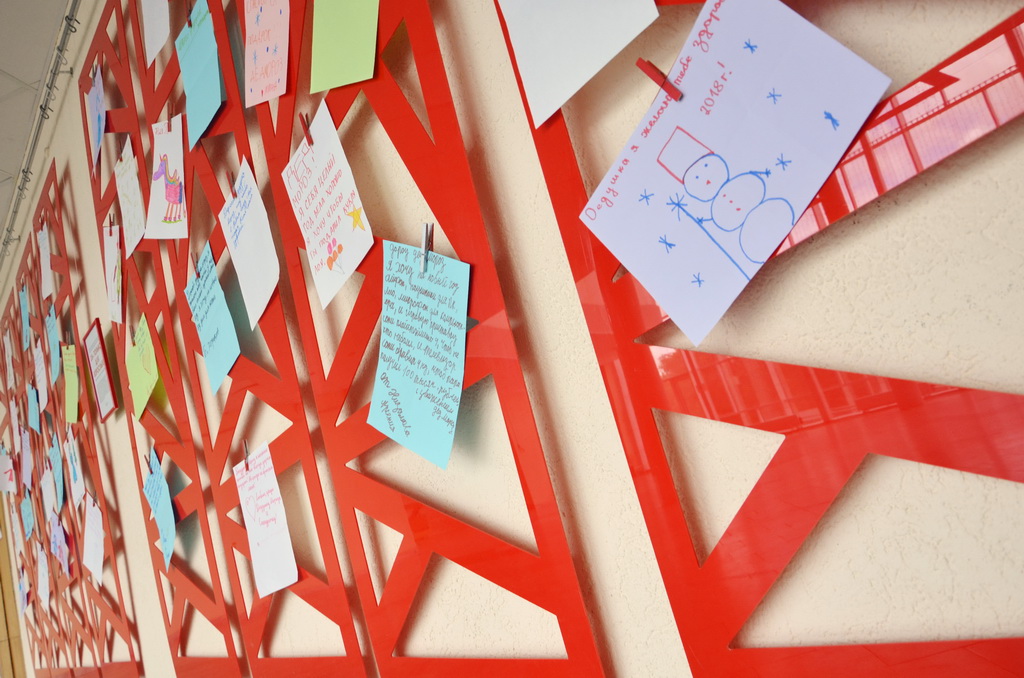 На выставочном стенде в мраморном зале собраны письма Деду Морозу, которые оставляли юные посетители театра во время новогодних кампаний. Их бережно, в течение нескольких лет, собирал штатный театральный Дед Мороз и вот сейчас, под занавес сезона, передал руководству театра наиболее трогательные из них.