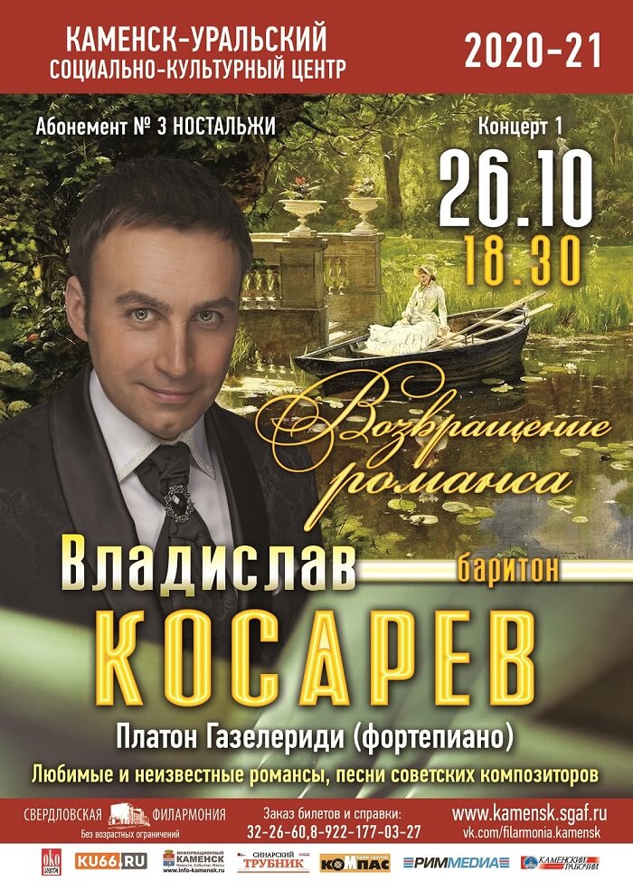 26 октября Владислав Косарев представит программу «Возвращение романса». Перед его потрясающим голосом раскрылись двери самых титулованных залов столицы – Государственного Кремлевского Дворца, Московского международного Дома музыки, Концертного зала им. П.И. Чайковского.