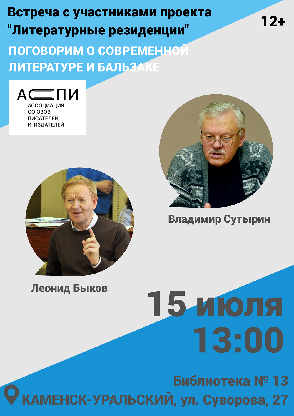 15 июля в библиотеке № 13 (ул. Суворова, 27) состоится финальная встреча с участниками первой сессии Уральской литературной резиденции.