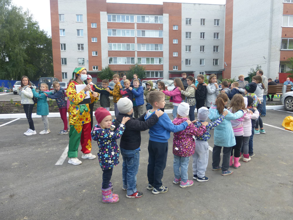 Праздник был организован творческим коллективом ДК «Современник». Программу вёл веселый скоромох, по площадке ходил большой плюшевый мишка. Были проведены активные игры для детей: бегали с мячом, прыгали в мешках, загадывали загадки. Участниками игр стали дети самого разного возраста, начиная с трех лет. Занятие нашлось для всех. Ребятам и их родителям очень понравилось такое времяпрепровождение.