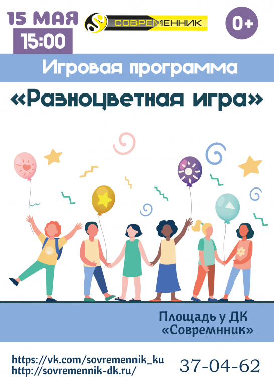 Игры, смех, эстафеты – всё это ждёт вас на нашей игровой программе! - 15 мая - «Разноцветная игра»