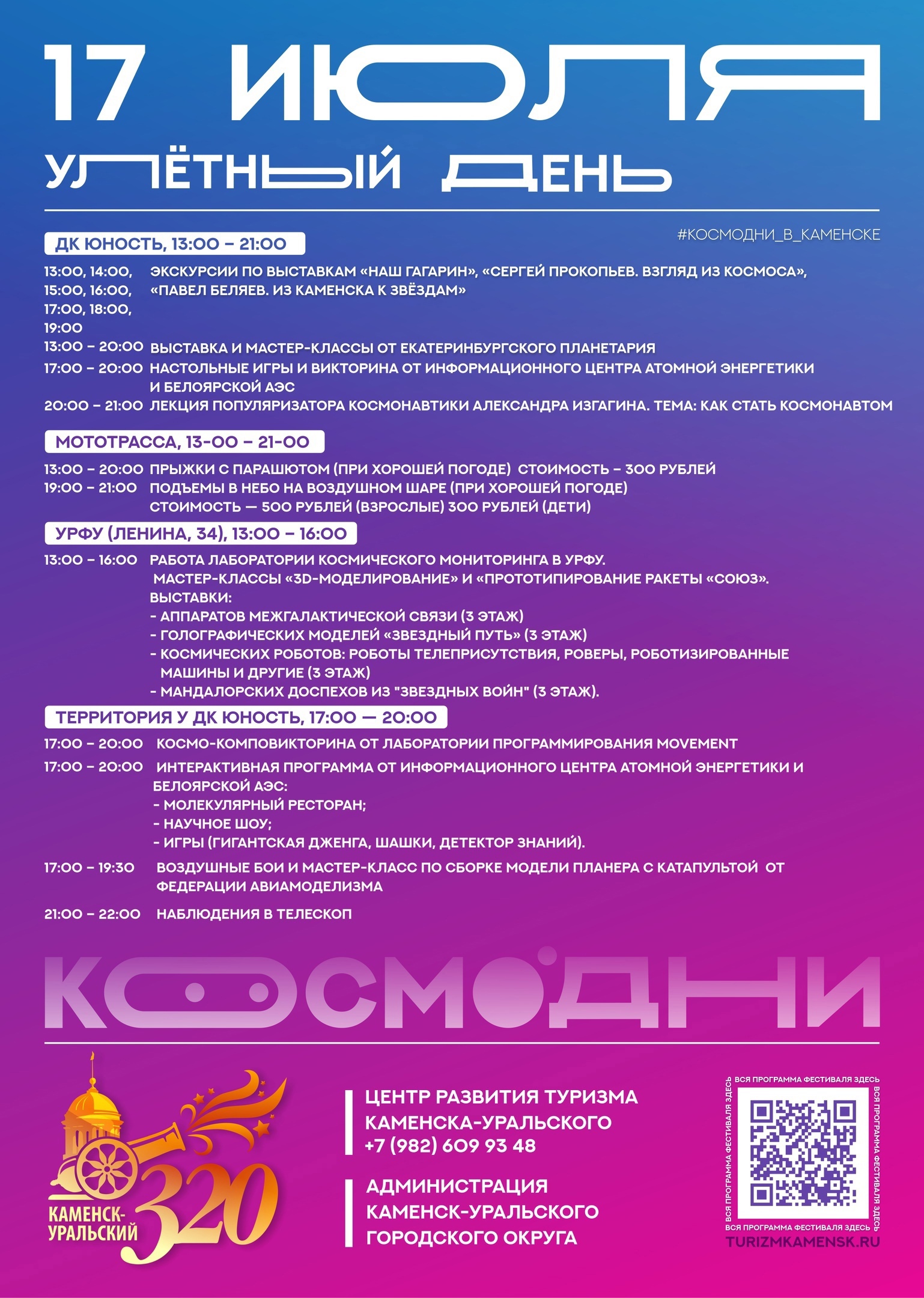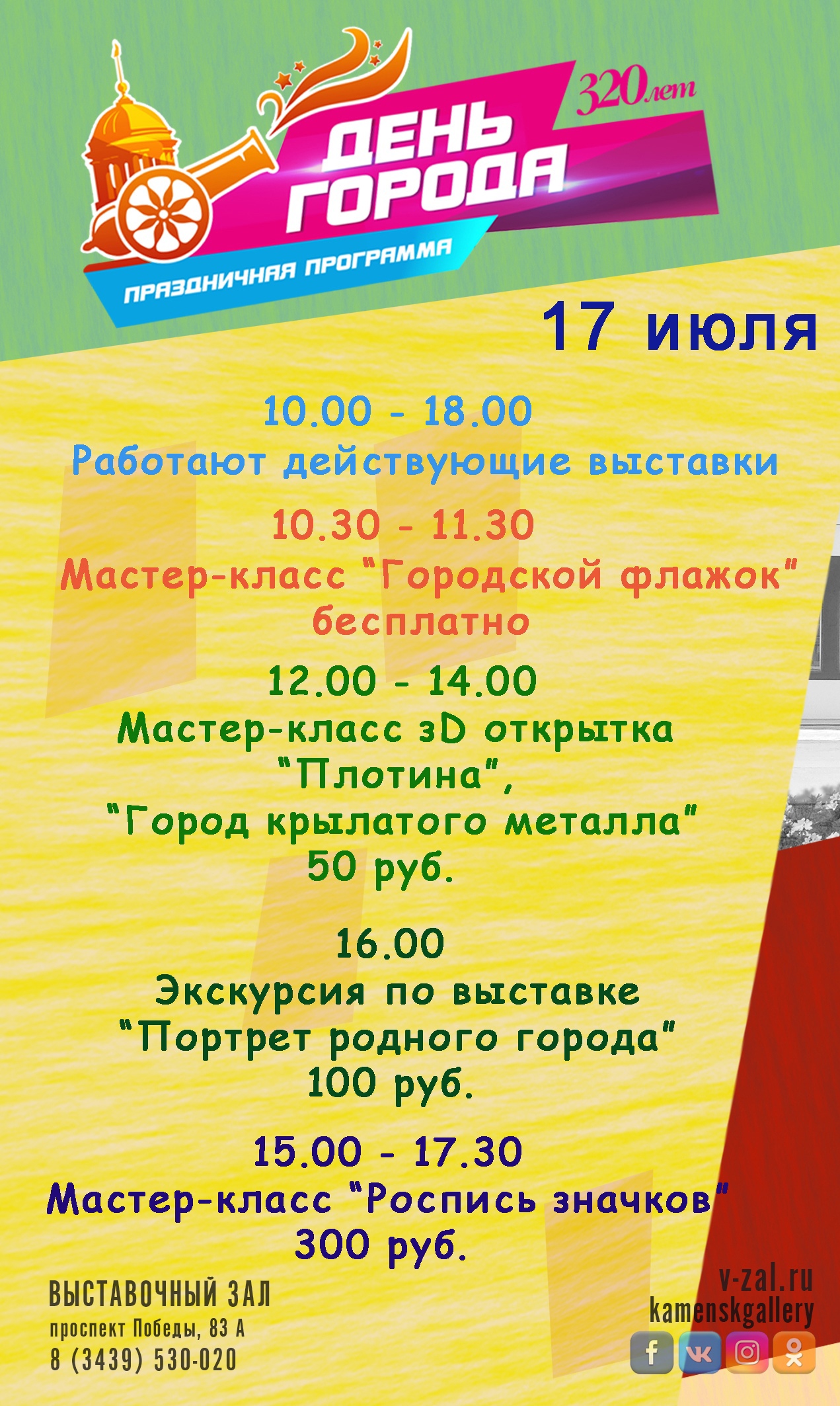 17 июля – ключевой день празднования Дня города Каменск-Уральский в 2021 году. Полная программа на день - вашему вниманию.